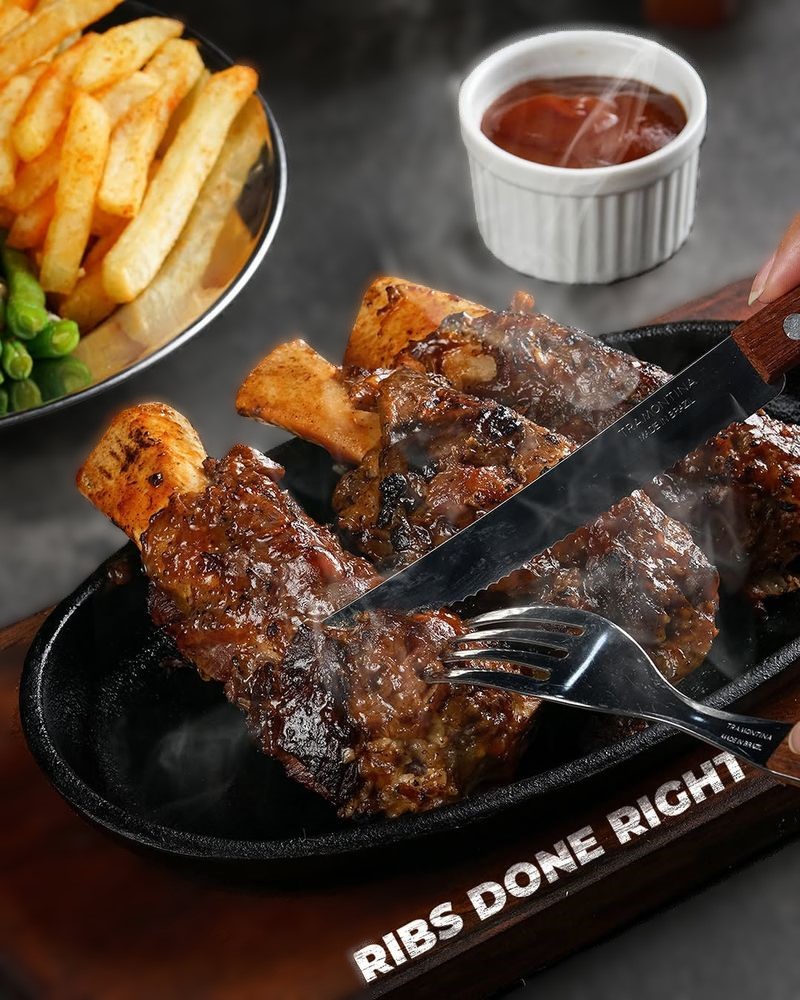 Menu andalan di sini menggunakan iga sapi impor asal Australia. Dagingnya terasa empuk dan juicy. Selain itu, bumbu BBQ dan rendang lokal meresap hingga ke serat daging. Perpaduan rasa ini menghadirkan sensasi unik di setiap gigitan.